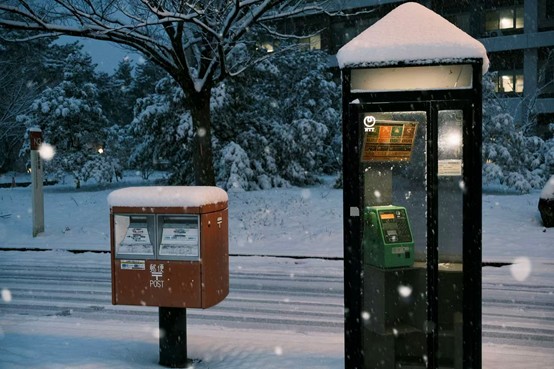 新大五十嵐キャンパス 静謐な雪の夕方(撮影:中国人留学生WANG ZHENG)